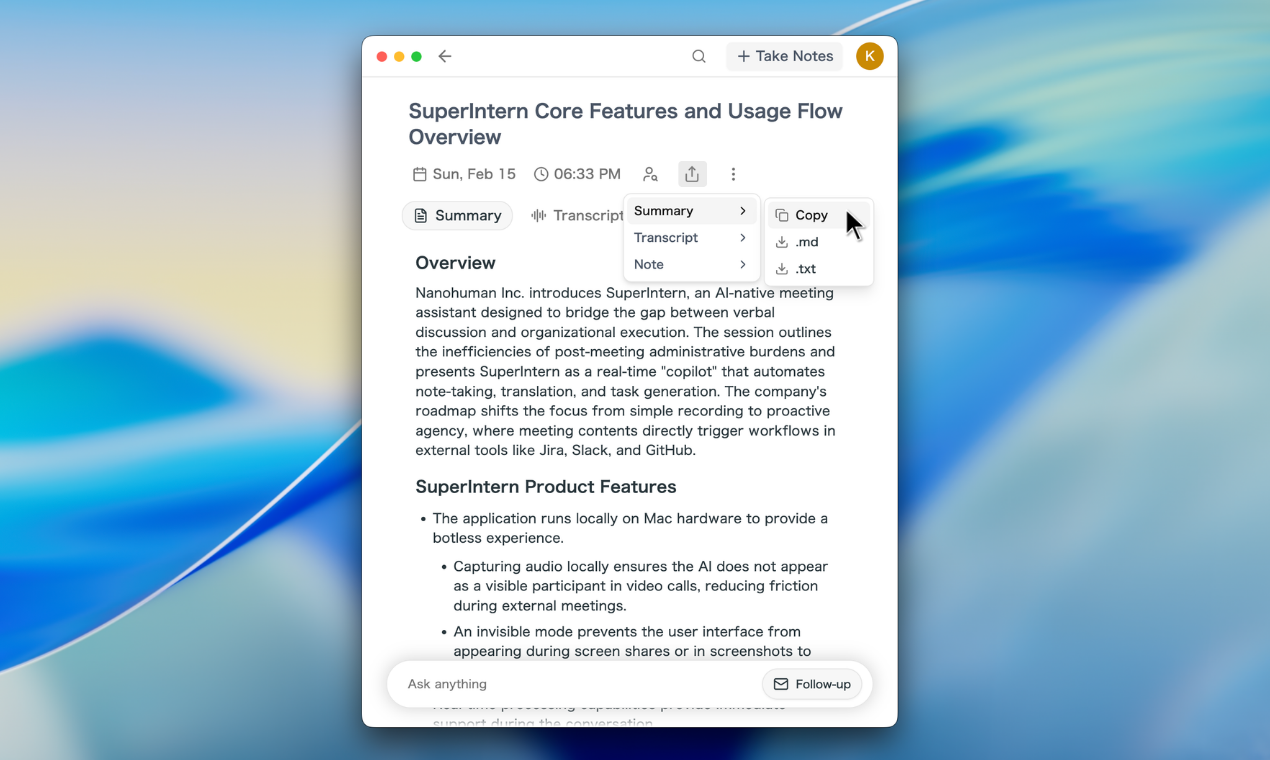 You can now download or copy your Summary, Transcript, and Notes in multiple formats: