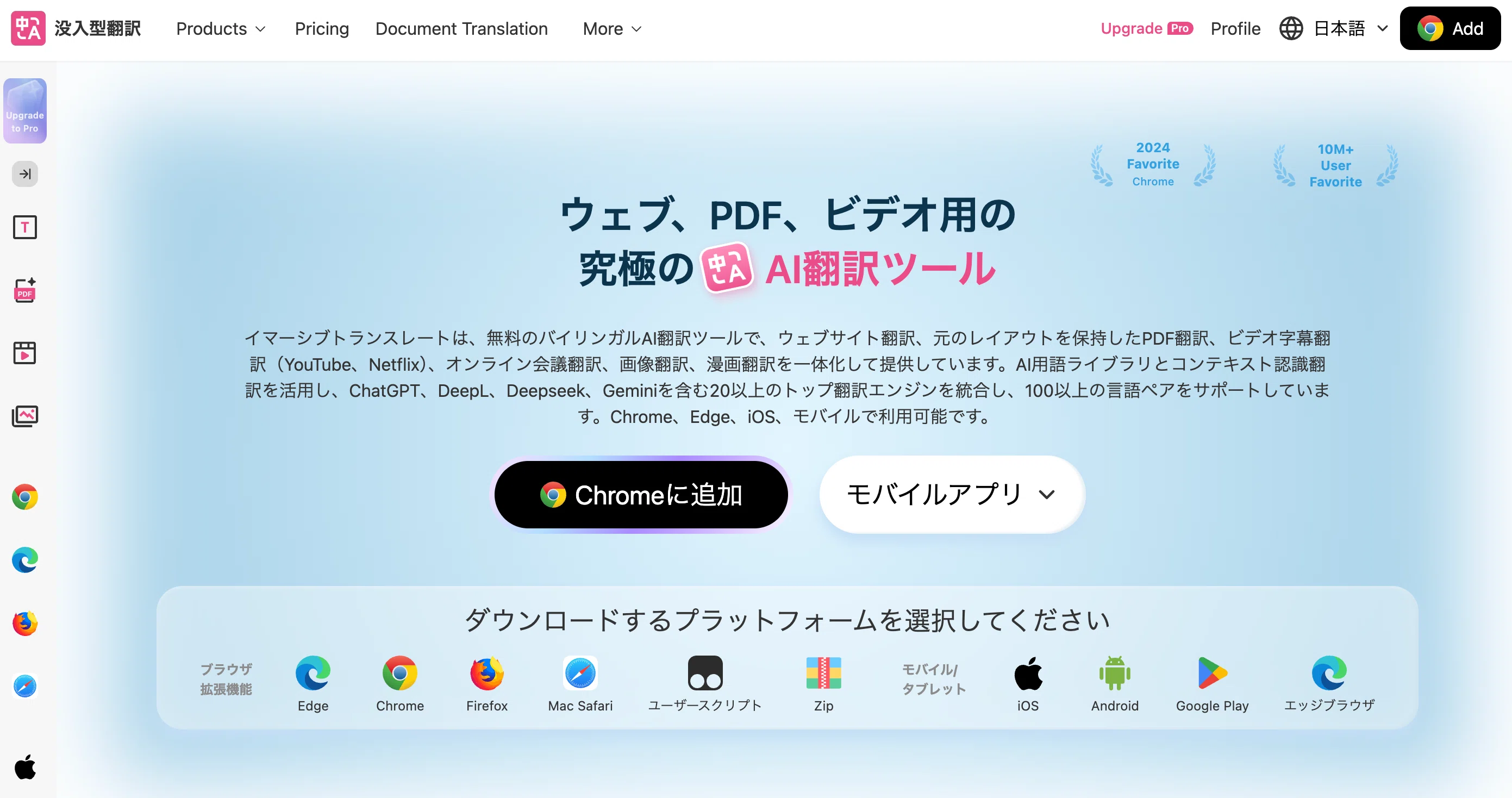 Immersive Translateは、「ウェブページや動画の二重字幕翻訳」からサービスを開始し、オンライン会議翻訳にも対応しました。